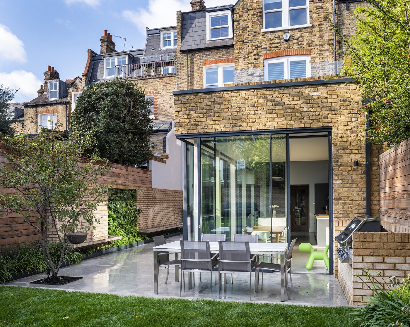 The remodelling of an large house in South London to provide a large kitchen and dining room with a better connection to the garden.