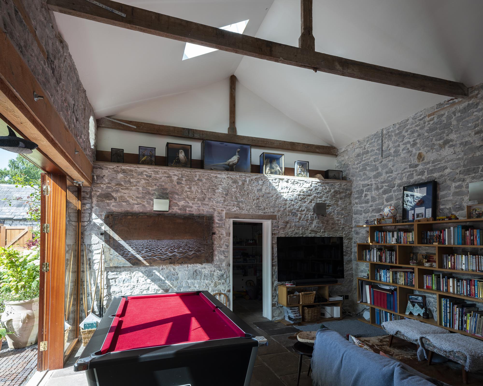 We renovated and converted the outbuildings to create extra accommodation for the family and their guests. The addition of a glazed room creates a light filled living space at the heart of this new accommodation.