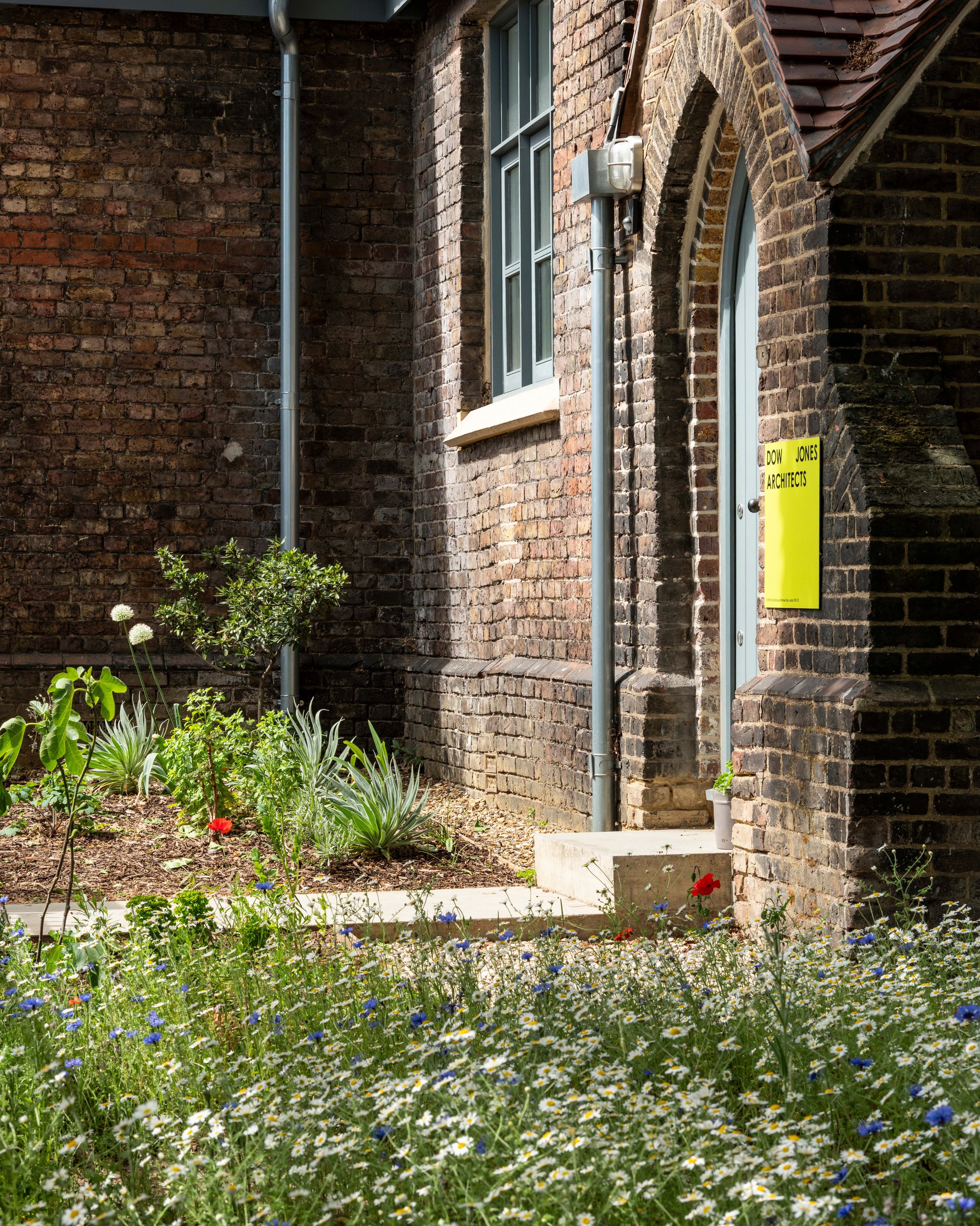 Our project refurbished a small derelict schoolhouse and converted it to our architecture studio, making a comfortable and uplifting space for us to work. It combines low carbon strategies with a listed building refurbishment.